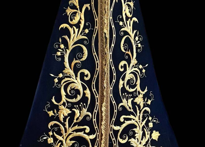 Es el caso de la Hermandad del Cerro, que ha restaurado y enriquecido el manto de camarín bordado en terciopelo azul. Estas labores han sido realizadas por Francisco Carrera Iglesias ‘Paquili’, quien ha donado el encaje antiguo de hojilla que estrena el manto.