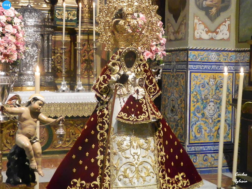 La imagen de Castillo Lastrucci estuvo en su peana y con su ráfaga para la ocasión y media luna a sus pies. A los lados había dos jarras de flores de tonalidad blanca.
