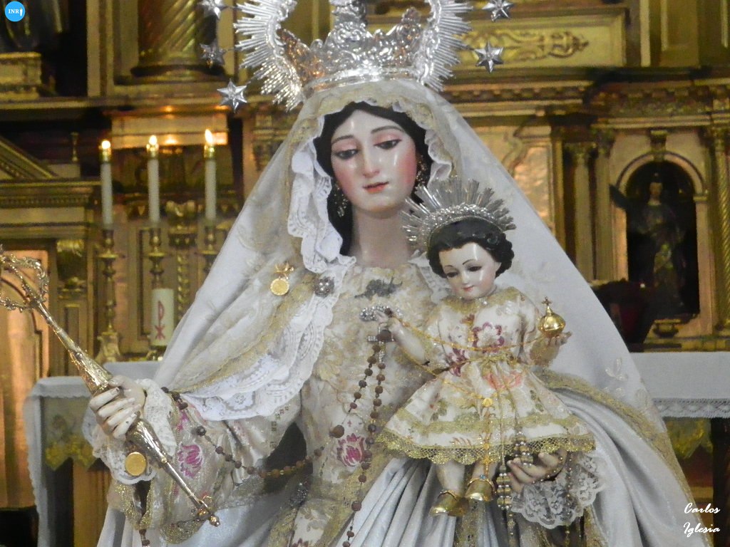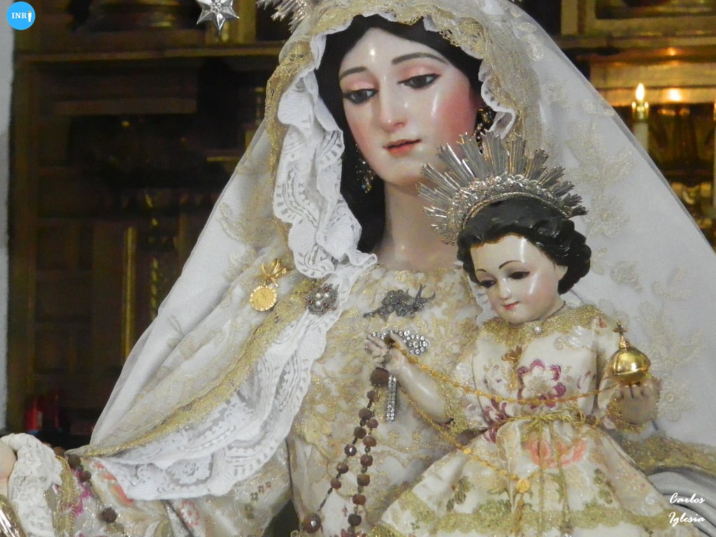La Virgen de las Nieves estuvo en besamanos en el convento de las Teresas del barrio de Santa Cruz. Una estampa inédita en la que presentaron a la imagen letífica con su terno blanco en el presbiterio de esta capilla.