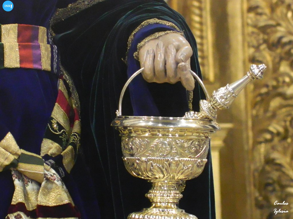 La imagen de la corporación del Lunes Santo estuvo expuesta en el presbiterio del altar mayor de este templo. Vestía para la ocasión manto liso de terciopelo verde y saya a juego azul del mismo tejido, junto con un fajín hebraico y tocado blanco. Además llevaba su tradicional hisopo y acetre y su correspondiente aureola.