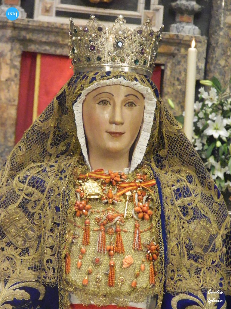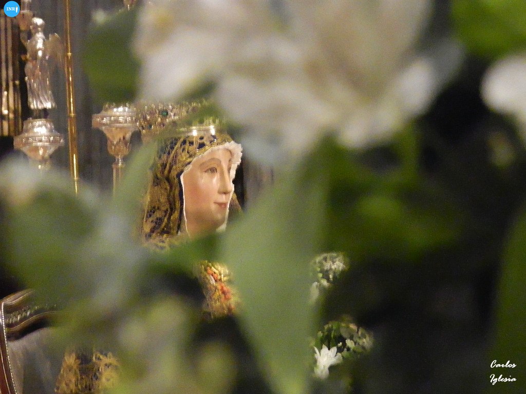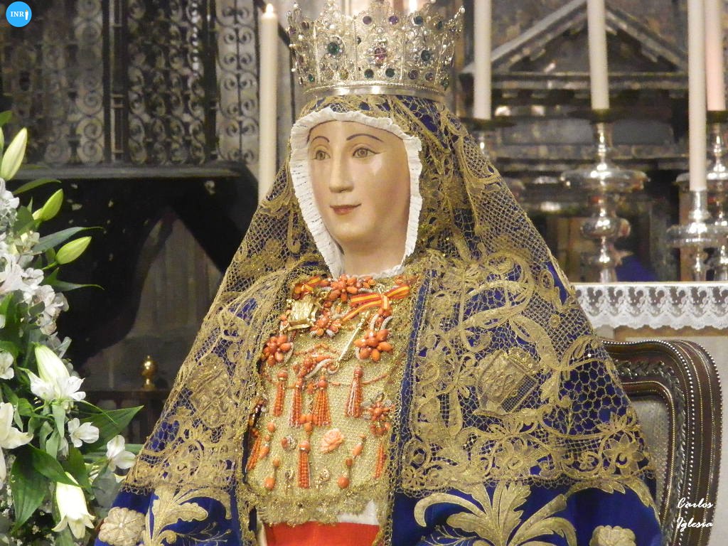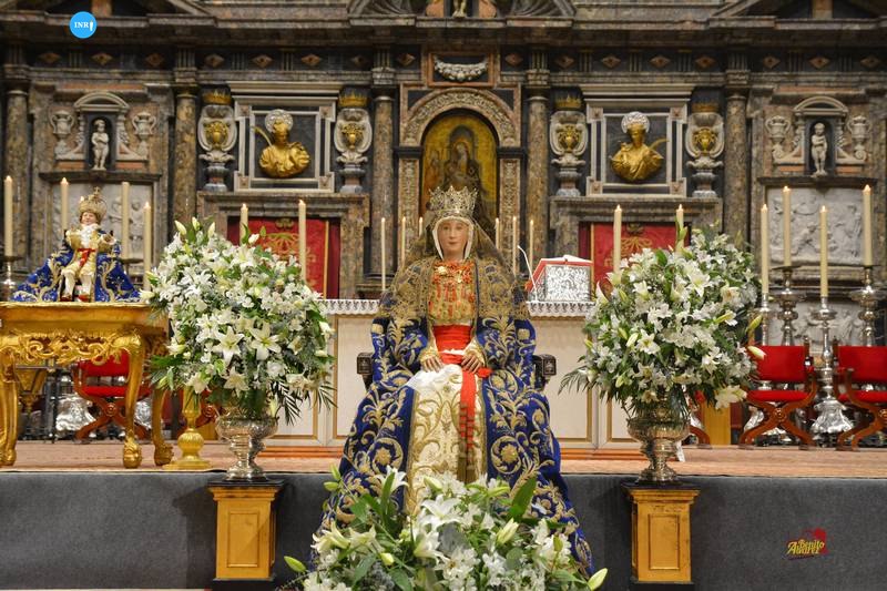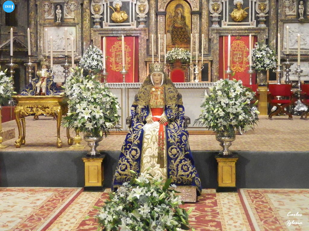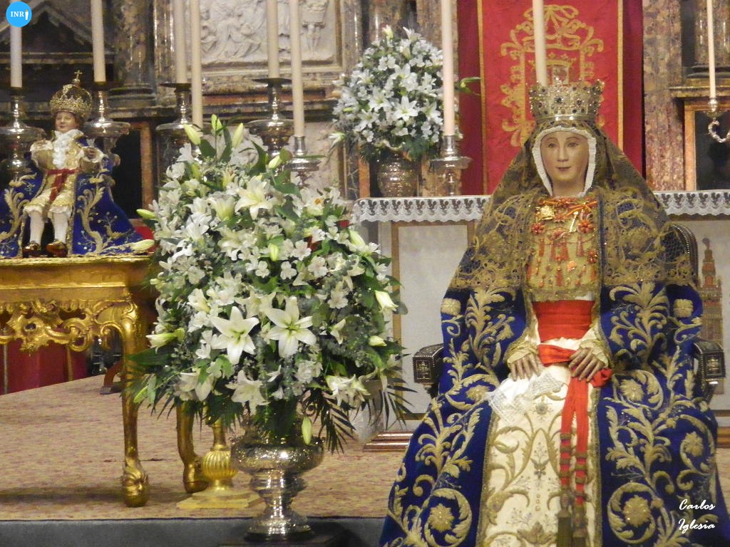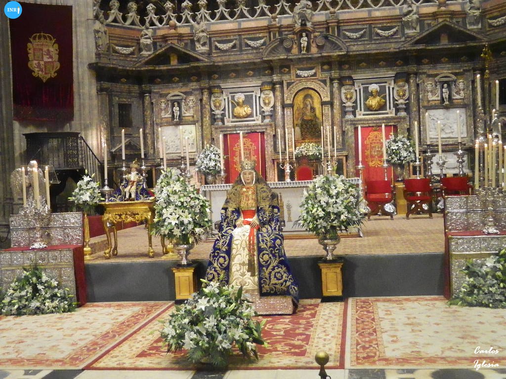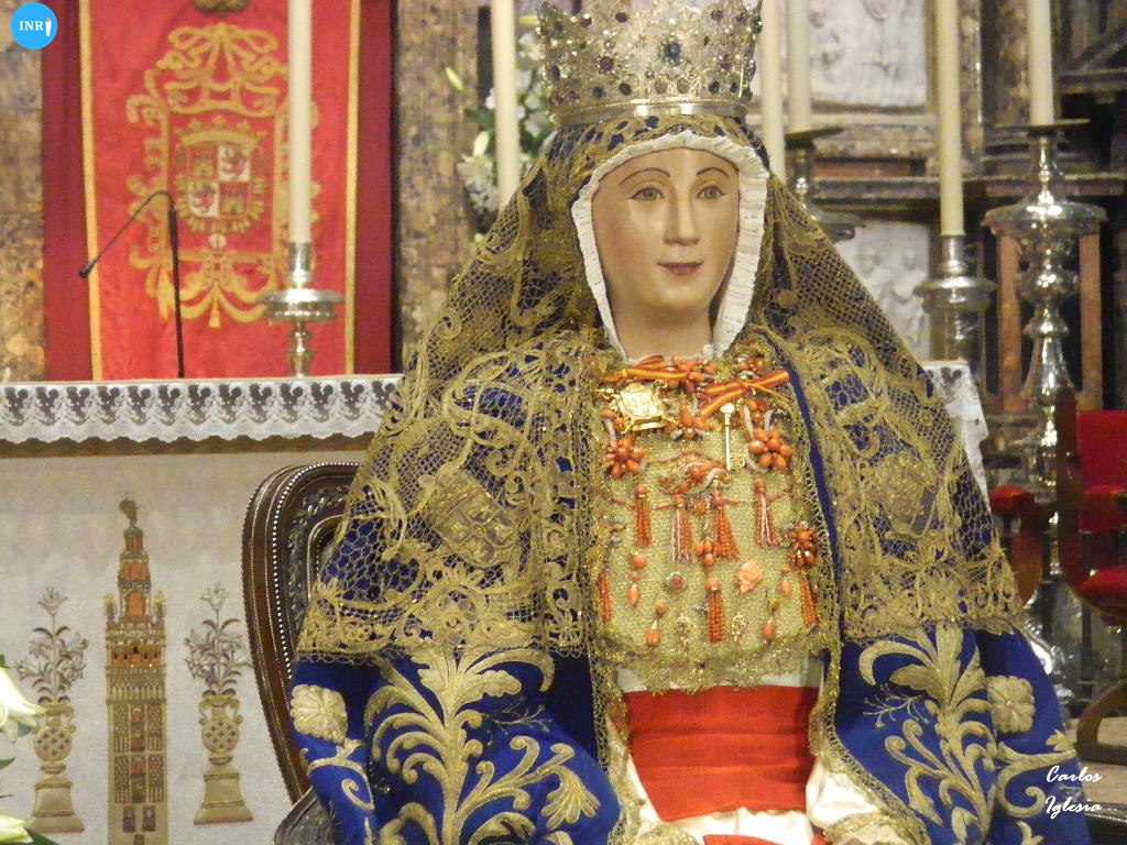La imagen estuvo en la capilla real para la ocasión. Llevó en este culto la corona de la filigrana, antigua de salida, el pecherín de corales, saya de salida y el manto azul pavo característico de la novena. Miles de fieles estuvieron con la patrona de Sevilla y su archidiócesis en una cita imprescindible en estas fechas.