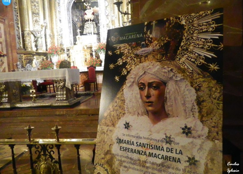 Tras el cierre de puertas de la basílica en la noche del pasado martes 12 de agosto, fue retirada del culto la Virgen de la Esperanza Macarena para ser sometida a una restauración por parte de Pedro Manzano y con la supervisión del IAPH y con sendas comisiones de trabajo y de seguimiento de estos trabajos, aprobada el pasado martes 29 de julio.