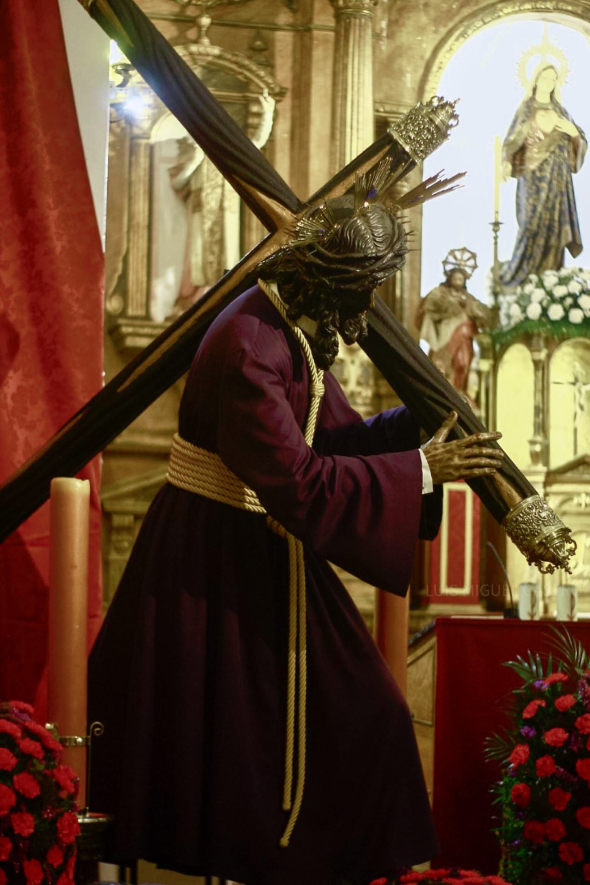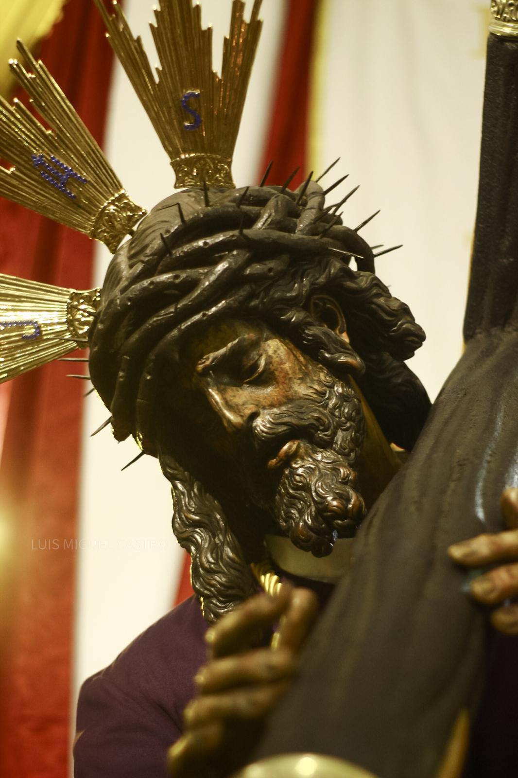 Esta talla guarda ciertas semejanzas con el ‘Señor de Sevilla’, incluyendo incluso la propia túnica morada lisa o las conocidas potencias. Su vestidor es José Antonio Grande de León.