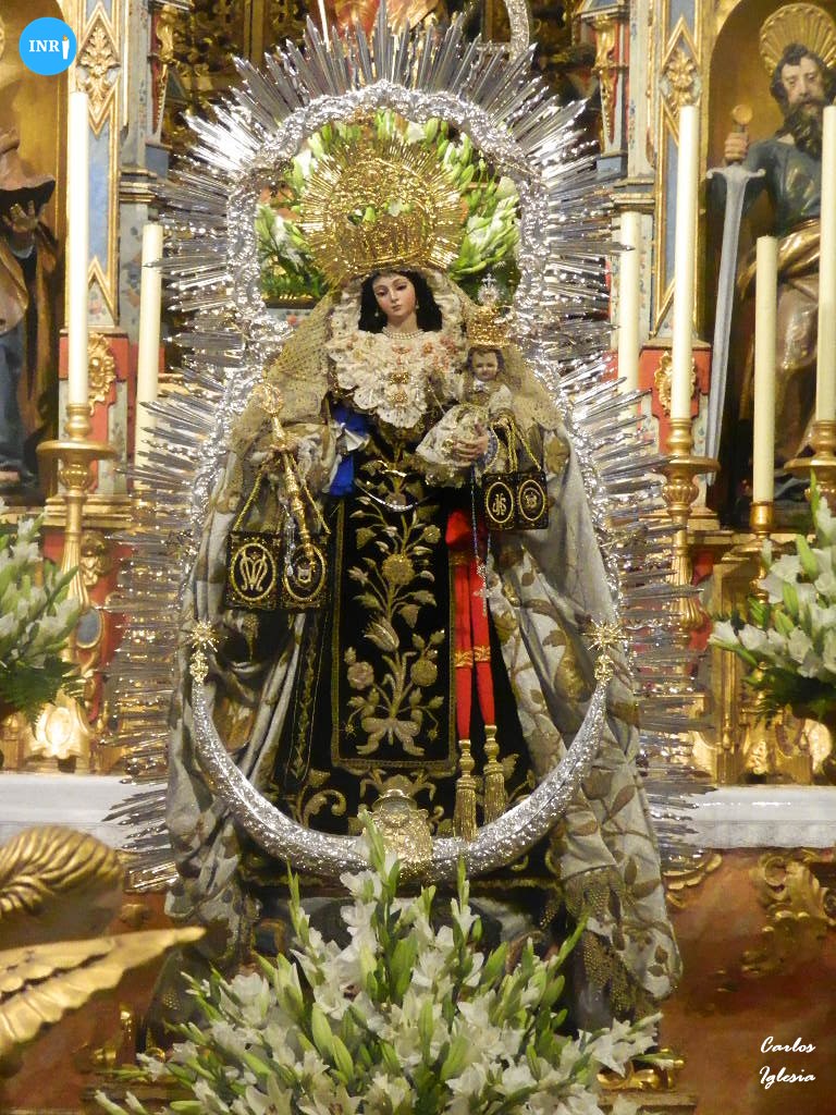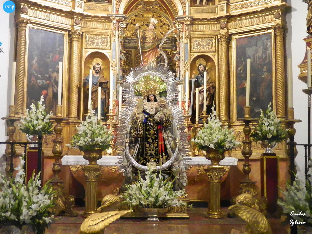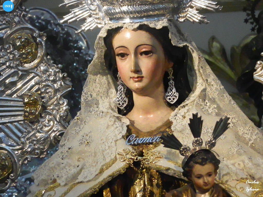 La Virgen del Carmen del Santo Ángel estuvo en una de las naves laterales del templo en besamanos, previo a la subida a su paso. Llevó su hábito carmelita y estuvo bajo dosel, con flores de tonalidad blanca y candeleros de cera blanca.