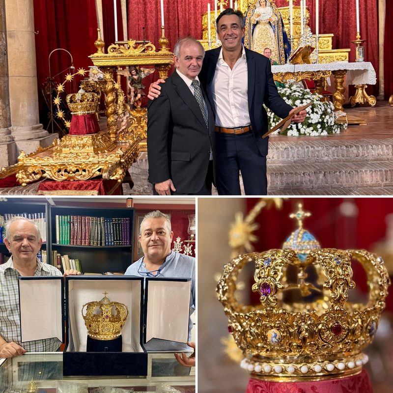 Por todo ello, hace unos días se ha presentado esta presea. Es un diseño de Joaquín de los Ríos Noguero y realizada por Orfebrería Andaluza. La pieza antecedió en unas pequeñas andas a la imagen en el traslado hacia el convento de la Encarnación