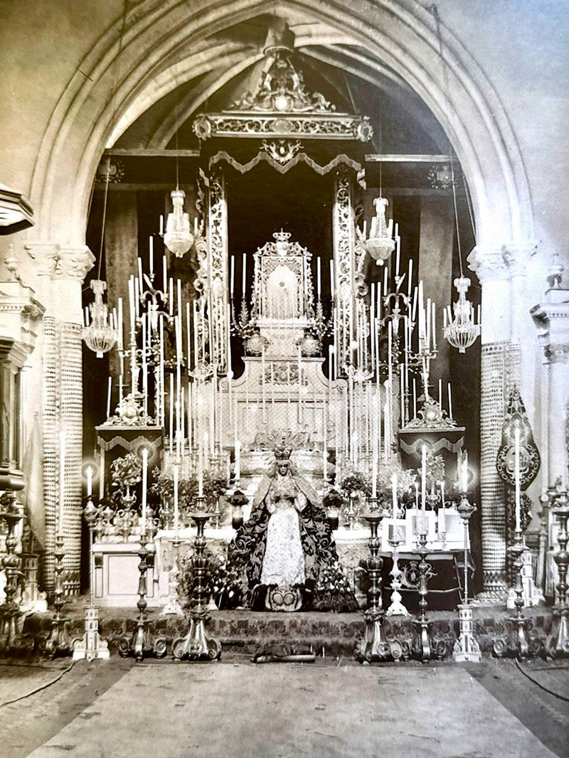 «El 18 y 19 de diciembre de 1925 (según fue acordado en Junta de 18 de noviembre del mismo año) se celebró el besamanos por primera vez a la Santísima Virgen de la Esperanza, viéndose la Iglesia de San Gil tan concurrida de fieles que hubo momentos en que era imposible el poder andar. La Santísima Virgen estaba colocada a los pies del Altar mayor con su artística y hermosa corona de Cofradía, saya blanca bordada en oro y hermoso manto negro bordado en el mismo metal. En su pecho tenía un rico alfiler de brillantes y esmeralda y en la mano derecha una sortija de brillante y zafiro. Todo el barrio de la Macarena desfiló para besar la mano de la Santísima Virgen desarrollándose casos de verdadero entusiasmo y cariño difícil de enumerar. Para dar idea de las personas que concurrieron a las 8 de la noche estaba la Iglesia completamente llena y se ordenó se cerrara no dejando entrar a más personas, pero hubo que desistir pues a las puertas de la referida Iglesia había más de 1.000 personas que querían entrar y alegaron que al día siguiente no podían ir y no se querían quedar sin asistir al besamanos; en vista de esto se abrió una puerta y se dejó entrar a las personas que lo habían solicitado. El día 19, segundo día de besamanos, fue muy visitada la Santísima Virgen sin tener en cuenta los fieles que estaba diluviando, durando hasta la una de la tarde hora en que se cerró el Templo. Se calcula que las personas que asistieron al besamanos pasaron de 10,000 siendo la nota simpática el estar mezclada todas las clases sociales desde S.A.R. Dª Esperanza de Borbón y Orléans, Princesa de Borbón, con sus augustas hermanas hasta la más humilde y pobre del barrio de la Macarena. Como caso curioso se cita el de haber venido al besamanos desde San Juan de Aznalfarache más de 15 jóvenes los que regresaron a pie a dicho pueblo después de las 9 de la noche. A pesar de la mucha aglomeración de personas que con motivo del referido besamanos no hubo que registrar alteración de orden ni incidente alguno. Esta nueva y hermosa festividad que se hizo por primera vez y a título de ensayo quedará establecida para todos los años, para mayor gloria de la Santísima Virgen de la Esperanza y honra de los Macarenos.»