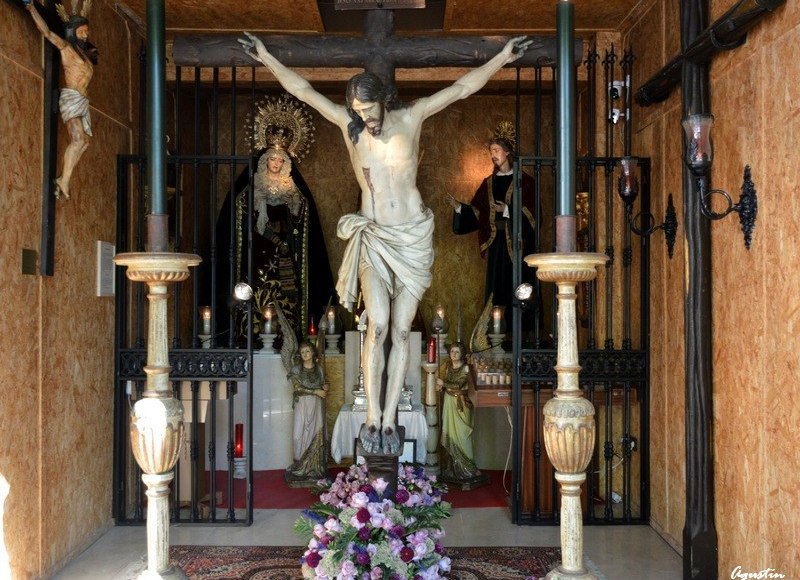 Se trata del Cristo Salvador, una obra de Francisco Pinto Berraquero del año 1954 y réplica del Cristo de la Defensión de Jerez de la Frontera.