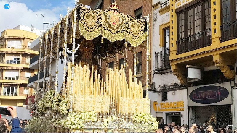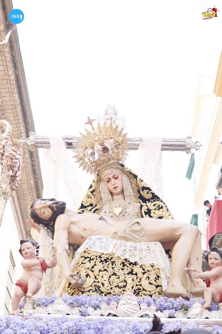 El paso alegórico llevaba un exorno de hiedra y cardos, acompañado de música de capilla; la urna con clavel rojo sangre con la Banda Sinfónica Municipal de Sevilla, y por último el paso del duelo la Banda de Música del Ejército del Aire.
