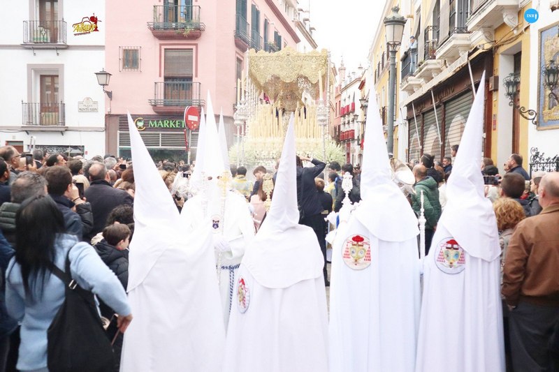 Desde la basílica menor de María Auxiliadora salió la Hermandad de la Trinidad con el Sagrado Decreto, el Cristo de las Cinco Llagas, la Virgen de la Concepción y la Virgen de la Esperanza Coronada.