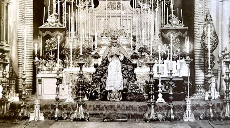 «El 18 y 19 de diciembre de 1925 (según fue acordado en Junta de 18 de noviembre del mismo año) se celebró el besamanos por primera vez a la Santísima Virgen de la Esperanza, viéndose la Iglesia de San Gil tan concurrida de fieles que hubo momentos en que era imposible el poder andar. La Santísima Virgen estaba colocada a los pies del Altar mayor con su artística y hermosa corona de Cofradía, saya blanca bordada en oro y hermoso manto negro bordado en el mismo metal. En su pecho tenía un rico alfiler de brillantes y esmeralda y en la mano derecha una sortija de brillante y zafiro. Todo el barrio de la Macarena desfiló para besar la mano de la Santísima Virgen desarrollándose casos de verdadero entusiasmo y cariño difícil de enumerar. Para dar idea de las personas que concurrieron a las 8 de la noche estaba la Iglesia completamente llena y se ordenó se cerrara no dejando entrar a más personas, pero hubo que desistir pues a las puertas de la referida Iglesia había más de 1.000 personas que querían entrar y alegaron que al día siguiente no podían ir y no se querían quedar sin asistir al besamanos; en vista de esto se abrió una puerta y se dejó entrar a las personas que lo habían solicitado. El día 19, segundo día de besamanos, fue muy visitada la Santísima Virgen sin tener en cuenta los fieles que estaba diluviando, durando hasta la una de la tarde hora en que se cerró el Templo. Se calcula que las personas que asistieron al besamanos pasaron de 10,000 siendo la nota simpática el estar mezclada todas las clases sociales desde S.A.R. Dª Esperanza de Borbón y Orléans, Princesa de Borbón, con sus augustas hermanas hasta la más humilde y pobre del barrio de la Macarena. Como caso curioso se cita el de haber venido al besamanos desde San Juan de Aznalfarache más de 15 jóvenes los que regresaron a pie a dicho pueblo después de las 9 de la noche. A pesar de la mucha aglomeración de personas que con motivo del referido besamanos no hubo que registrar alteración de orden ni incidente alguno. Esta nueva y hermosa festividad que se hizo por primera vez y a título de ensayo quedará establecida para todos los años, para mayor gloria de la Santísima Virgen de la Esperanza y honra de los Macarenos.»