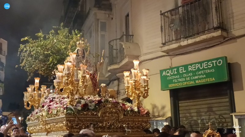 La alegría era total entre sus hermanos y devotos, desbordada por su fe pastoreña. Estuvo acompañada por su formación musical, la Banda de Música de Coria del Río. Durante el recorrido saludó al Ayuntamiento hispalense y a la Hermandad de los Panaderos en su capilla.