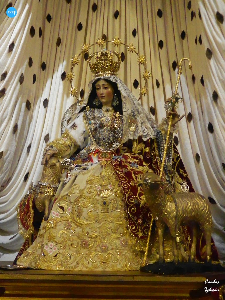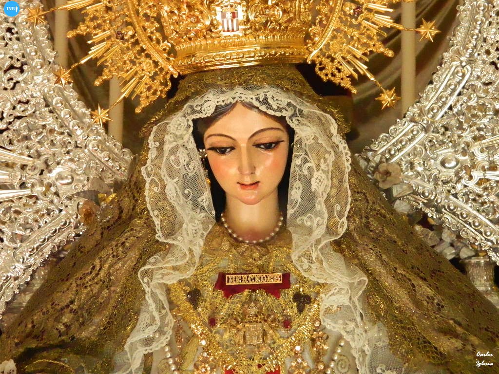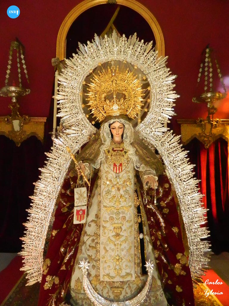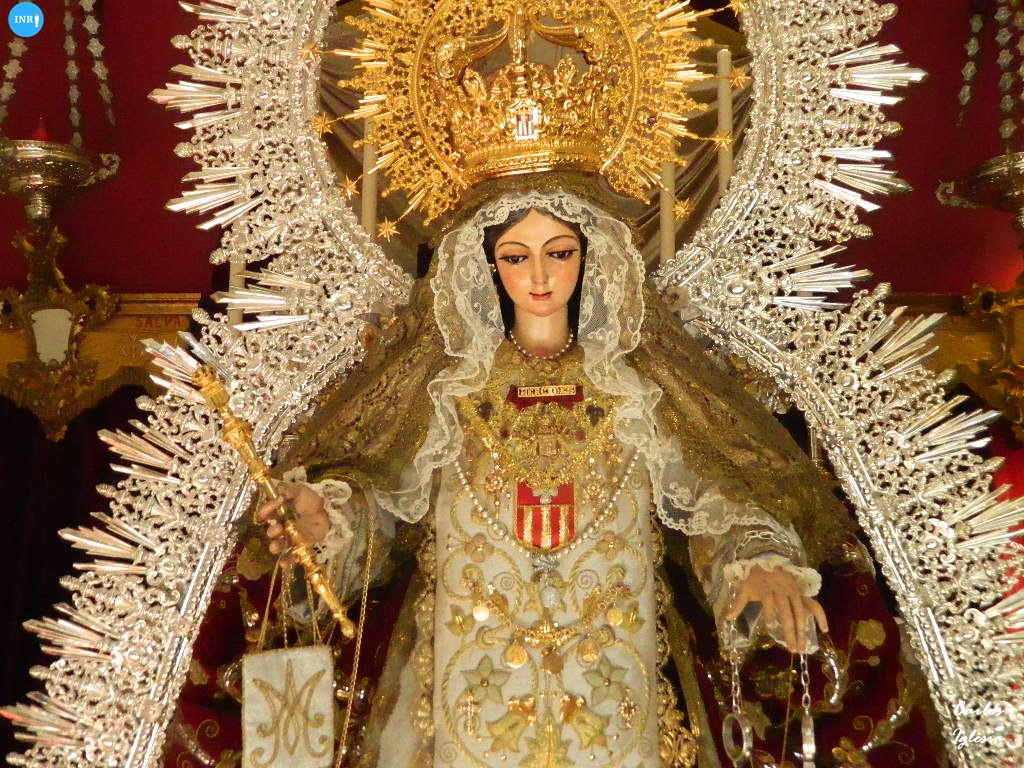 Y en la Puerta Real, la Virgen de las Mercedes ha estado expuesta en besamanos en su capilla. Para la ocasión, lució manto rojo y saya a modo de escapulario blanco, propio del hábito mercedario. La imagen se completa con su ráfaga y media luna a sus pies.