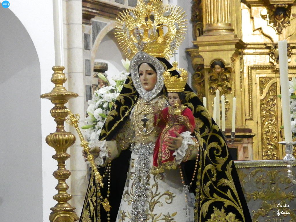 La Virgen de Araceli fue expuesta en besamanos. La imagen letífica de la corporación de San Andrés estuvo a los pies del altar mayor, luciendo el manto bordado en terciopelo burdeos y la saya blanca. Jarras con flores de tonalidad blanca y pequeños candelabros de cera blanca completaban el conjunto elaborado por la priostía de la corporación, además del altar presidido por la imagen de la Inmaculada.