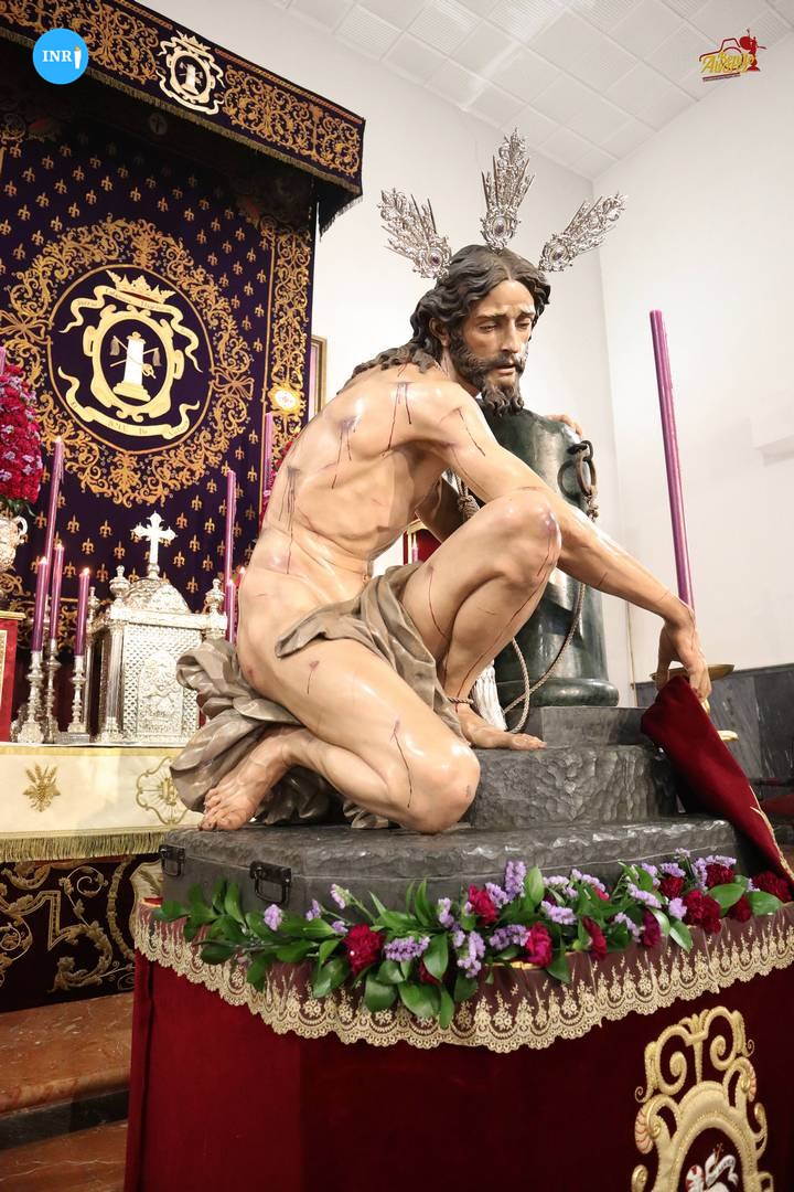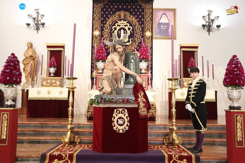 Para finalizar, se celebraron los primeros cultos en honor al Cristo de la Púrpura de la Hermandad de las Cigarreras. Tuvo lugar en la capilla del colegio de Santa Ana, donde se le colocó en la mano una túnica burdeos bordada. Un altar a modo de dosel con cera de color morada y flores de tonalidad roja y morada completaron la escena.