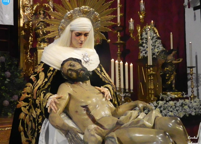 La Virgen de la Piedad es de autoría anónima y fue realizada en torno a 1676. Está atribuida a la producción de Pedro Roldán o de su hija Luisa Roldán «la Roldana». Tiene las facciones maduras y un dolor interior que se manifiesta en las lágrimas que surcan sus mejillas. Tiene ciertas similitudes morfológicas y estilísticas con la Virgen de la Esperanza Macarena.