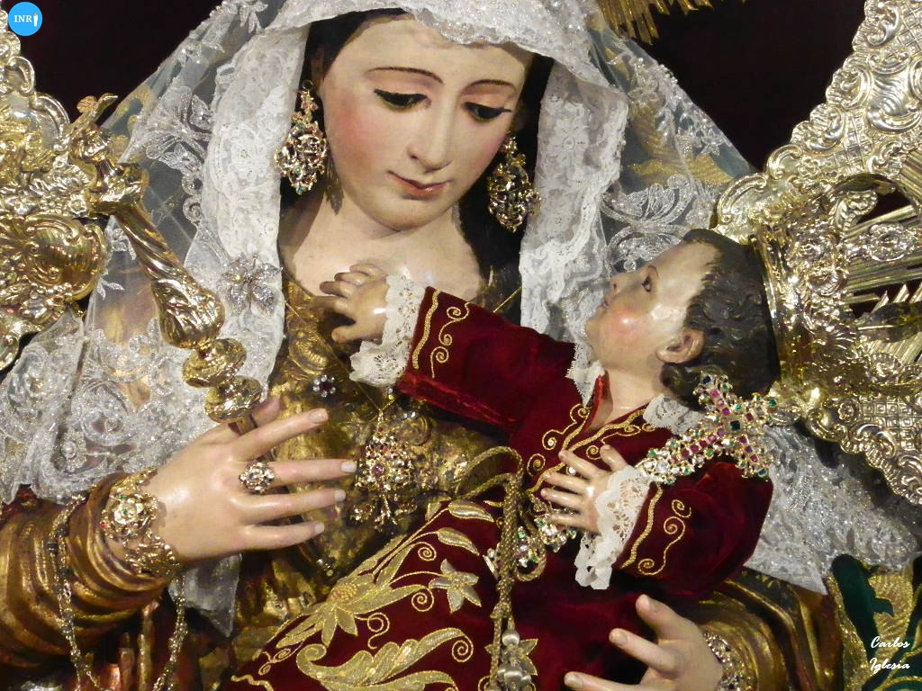 Llevó su manto bordado en terciopelo verde para la ocasión. El conjunto se completó un exorno floral de tonalidad blanca, destacando los claveles, y distintos hacheros y candelabros de velas de color blanco, además de los santos que simbolizan las Letanías de la Virgen.