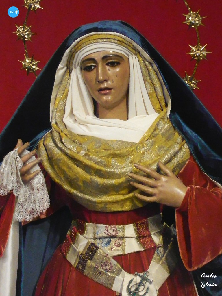 Para la ocasión, luce manto de terciopelo azul saya del mismo tejido en color rojo y un tocado de raso de seda y brocado italiano de finales del XVIII. Igualmente, porta el fajín que bordara Julián Torres en el año 2014 y que donara un grupo de hermanos.