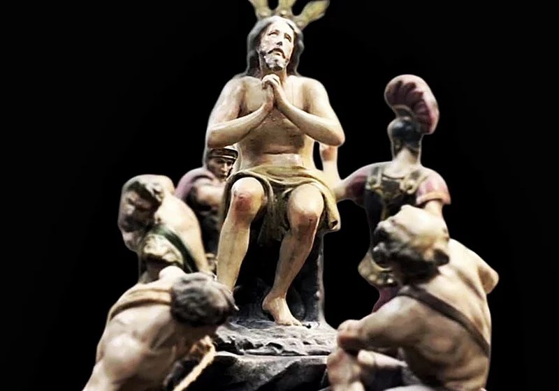 Este misterio estaría conformado, además del Señor de las Penas, por tres sayones y dos romanos. La imagen estaría en una posición más centrada y elevada sobre un montículo.