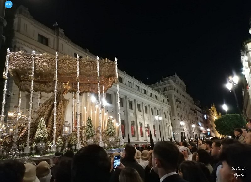 No es casual que desde la Plaza Nueva, la calle San Gregorio y la Plaza Virgen de los Reyes lleven años acaparando buena parte de la celebración para solaz y deleite de los ocupantes de las sillas de enea. Todo se articula para que las hermandades más mediáticas comparezcan allí en horas clave. El debate sobre retrasos o fluidez se reduce a ese kilómetro largo, ignorando la realidad de quienes culminan su estación de penitencia de madrugada. Si un palio regresa a su templo a las 4:25, poco importa: por la Campana pasó a buena hora, y quien lo contempló allí llevará seis o siete horas de sueño cuando el nazareno del último tramo del palio de la Virgen de las Aguas alcance su hogar. Ese nazareno y sus penalidades no cuentan; el eje de la celebración es el ocupante de la silla.