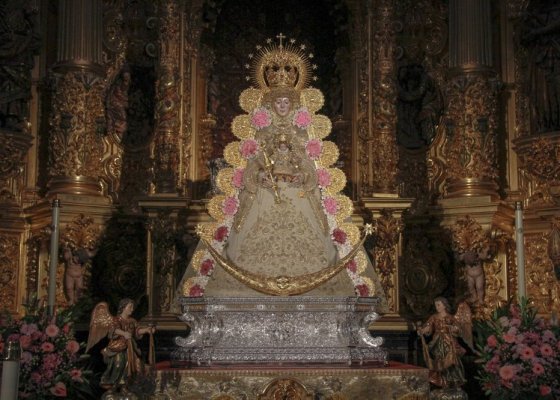 Los titulares de la Esperanza de Triana en su capilla sacramental de Santa Ana