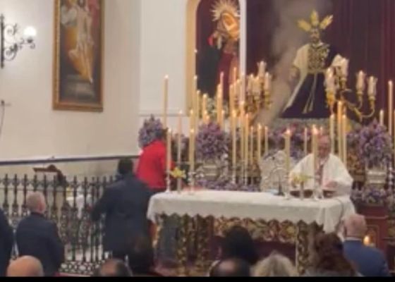 Un conato de incendio en el altar de quinario del Huerto de Sanlúcar la Mayor provoca heridas a dos hermanos