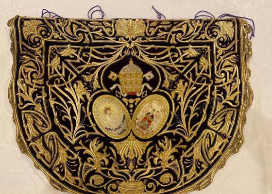 Carlos Iglesia // Manto de terciopelo azul bordado y saya blanca para la ocasión.