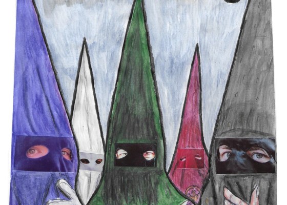 INRI // Está realizado a modo collage con las túnicas de nazarenos más representativa de la Semana Santa hispalense.